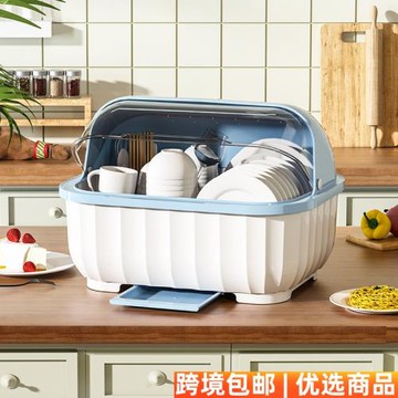 點我下載廚房碗碟碗盤收納架盤子瀝水碗架裝碗筷收納箱放碗餐具盒帶蓋碗柜