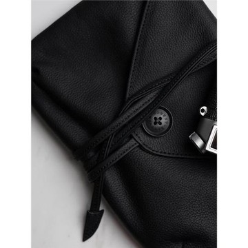 慵懶俐落真皮翻蓋軟方肩斜背包 黑