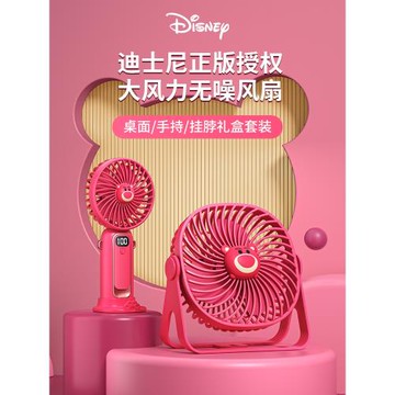 正版授權】迪士尼系列草莓熊手持小風扇超靜音小型便攜式usb折疊電扇制冷學生宿舍辦公室隨身迷你戶外高續航