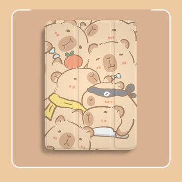 三折筆槽款ipadair5保護套卡皮巴拉水豚mini6殼平板可愛9代10十卡通air6無筆槽pro11小眾10.2防摔2024保護殼8