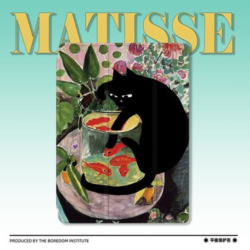復古馬蒂斯油畫黑貓適用于2022iPadPro12.9三折保護殼air5/mini6