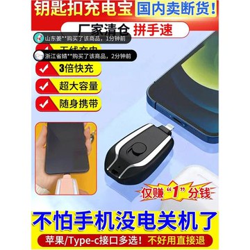 二合一mini迷你鑰匙扣應急充電寶伸縮充電頭無線充電手表手機2000