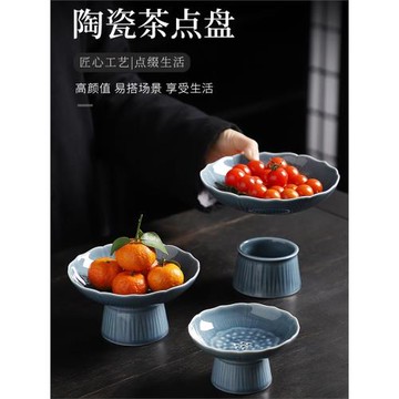 龍泉青瓷高腳果盤蓮花陶瓷點心盤中式茶點盤水果碟供佛果盤高足