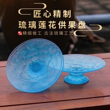 古法琉璃蓮花立體浮雕供果盤擺件供碟家居佛前供佛專用工藝品供盤