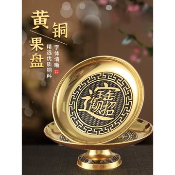 供佛用品 佛前供果盤純銅福字佛供盤家用招財貢品盤財神水果盤