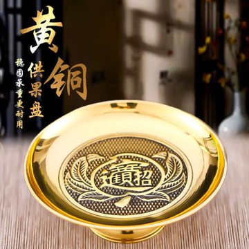 果盤寺廟供天祠堂大號供盤純家用供奉佛前菩薩貢品盤佛臺黃銅果盆