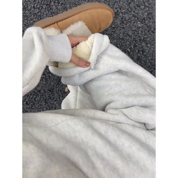 羊羔絨運動褲子女秋冬季高腰休閑加厚棉褲闊腿直筒小個子加絨衛褲