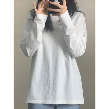 ins超火純棉T恤女春秋內搭純色長袖打底衫韓版潮學生外穿寬松上衣