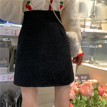 大碼細閃小香風半身裙高腰顯瘦超火粗花呢A字包臀裙復古毛呢短裙