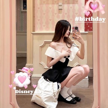 生日party小禮服高級感穿搭小個子公主蓬蓬一字肩黑色抹胸連衣裙