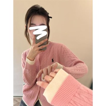 溫柔系凡爾賽假兩件針織開衫女秋冬季chic粉色上衣韓系巨好看外套