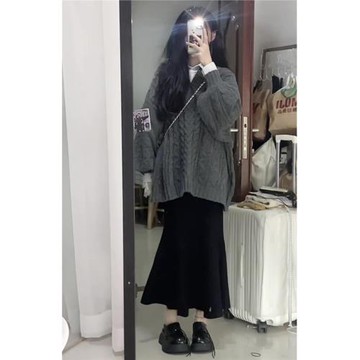韓系搭配高級感魚尾裙兩件套女早秋穿搭一整套ootd氣質毛衣套裝裙