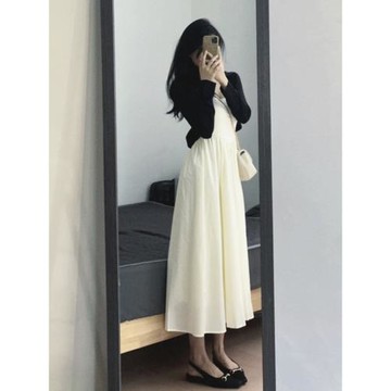 秋季2026新款女裝海邊度假法式長裙夏季氣質白色吊帶連衣裙子套裝
