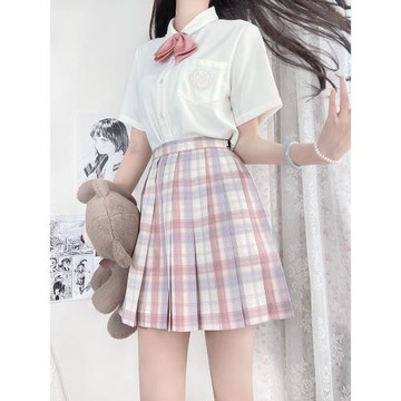 兔半眠原創正版情人節粉色格裙jk少女正統百褶裙半身裙短裙