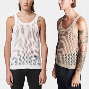 歐美男裝2023夏季新款打底針織衫寬松健身運動工字背心Men's