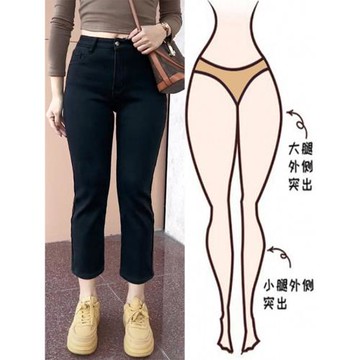 梨型身材穿搭黑色直筒牛仔褲女秋季大碼胖妹妹高腰顯瘦彈力九分褲