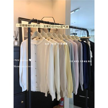 春季2025新款軟糯圓領針織衫金色扣設計感小眾毛衣女小個子短外套