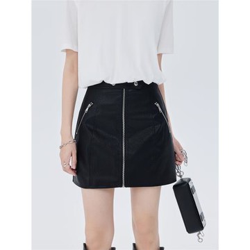 金屬拉鏈按扣pu皮裙微包臀短裙2025年秋季新款黑色高腰a字半身裙