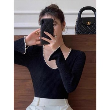 低領針織打底衫女秋冬2025新款內搭修身歐貨重工釘珠鑲鉆毛衣上衣