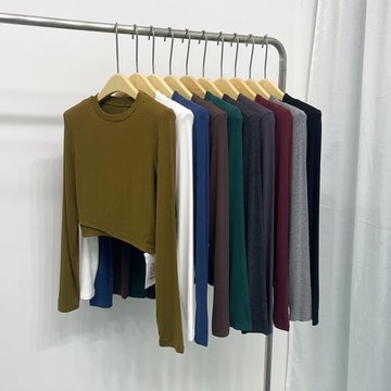元熙6075正品春秋氣質百搭螺紋棉墊肩短款高腰長袖T恤打底上衣女
