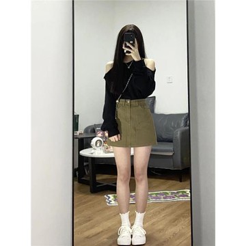 盤盤【美高學姐】彈力高腰半身裙女秋季a字短裙氣質小個子包臀裙