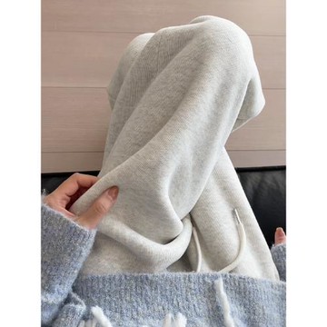 灰色運動褲女春秋2025新款直筒闊腿褲小個子寬松b慵懶風束腳衛褲