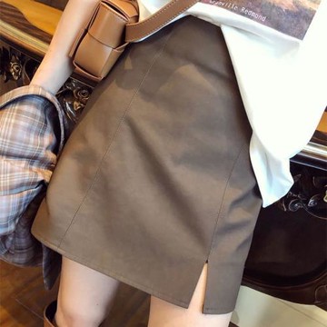 胖MM防走光半身裙開叉秋冬2021年新款高腰顯瘦PU短皮裙a字包臀裙