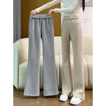 羊絨喇叭褲女秋冬2025新款爆款加絨微喇褲子女士休閑雪尼爾闊腿褲