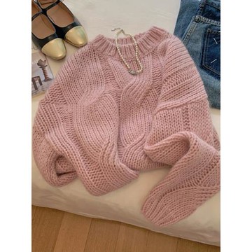櫻花粉甜美軟糯套頭長袖針織衫女2026年春季新款溫柔慵懶毛衣外套