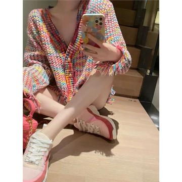 2025新款秋季法式小香風彩色編織v領針織外套女設計感毛衣開衫潮