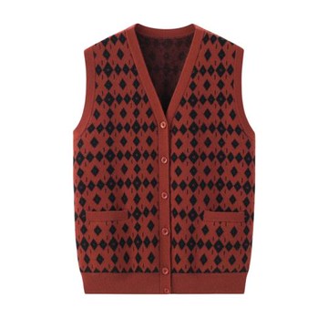 鄂爾多斯市產純山羊絨馬甲男V領開衫背心紅色中年爸爸款坎肩E3599