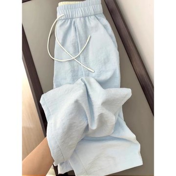 (免運)仿醋酸緞面高腰闊腿褲女夏季薄款2026新款冰絲防曬休閑直筒琉璃褲