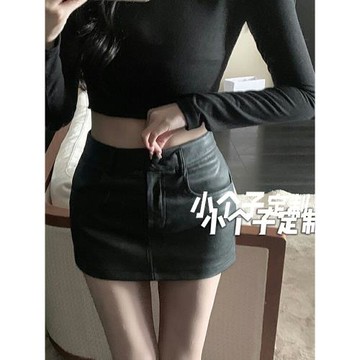 小個子皮裙女短裙秋冬pu皮春季短款超短裙子包臀a字半身裙黑色冬a
