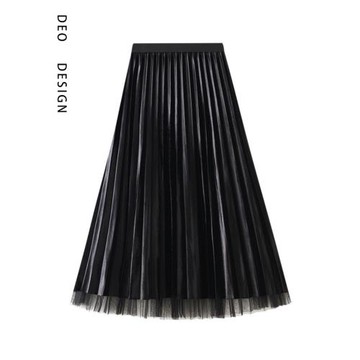 黑色金絲絨網紗半身裙女兩面穿2025春季新款中長款a字裙百褶裙子