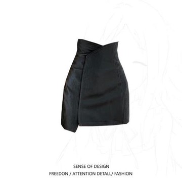 黑色魚尾半身裙梨形胖mm遮胯顯瘦高腰半裙小個子垂墜感包臀A字裙