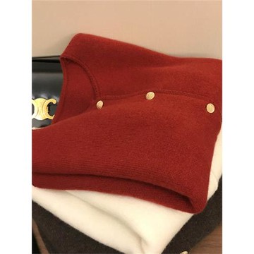 秋冬加厚圓領洋氣紅色羊毛針織開衫女寬松純色顯瘦毛衣外套打底衫