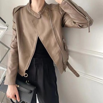 小皮衣外套女短款2024年新款春秋時尚立領修身機車服pu皮夾克女潮