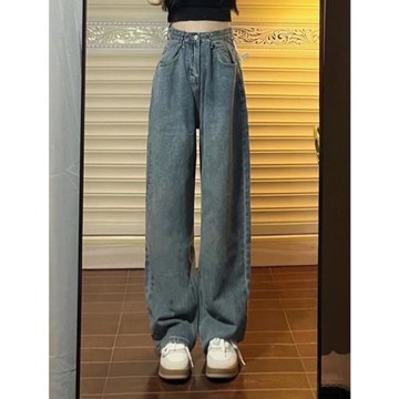 楊楊YANGRUOYU【藍城舊刊】闊腿牛仔褲女寬松直筒顯瘦復古休閑褲
