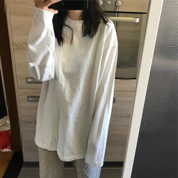 深圳南油025新款歐貨潮大碼胖mm大版寬松中長款長袖T恤打底衫女