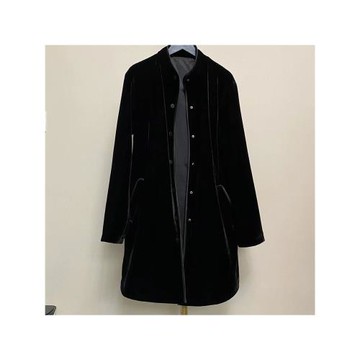 韓國高端金絲絨中長款風衣女秋冬新款寬松休閑顯瘦黑色加厚外套潮