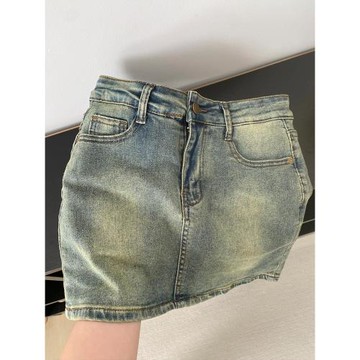 復古水洗牛仔半身裙女秋季2025新款復古大碼胖mm彈力高腰包臀短裙