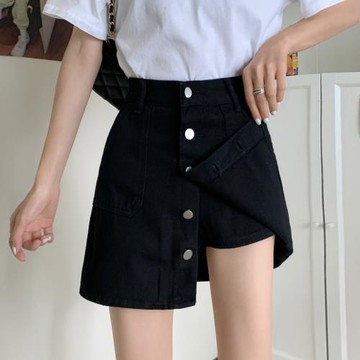 排釦牛仔短褲裙