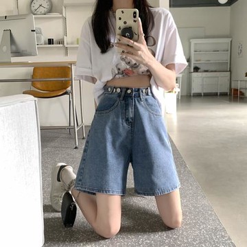 大碼牛仔短褲女2025年新款秋季超高腰a字闊腿寬松熱褲夏天薄款潮