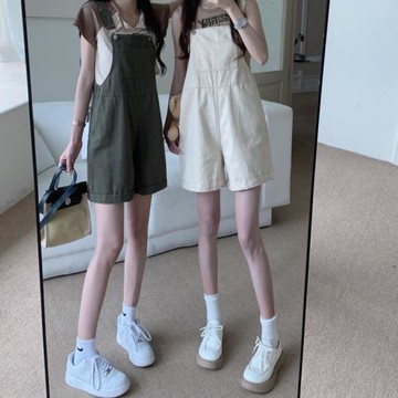 牛仔背帶褲女秋季薄款2025年新款大碼洋氣減齡寬松顯瘦闊腿短褲子
