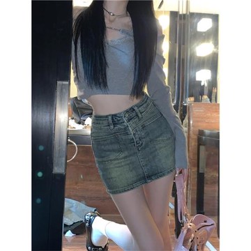 美式辣妹復古水洗做舊牛仔裙女秋季防走光半身裙包臀裙高腰短裙子