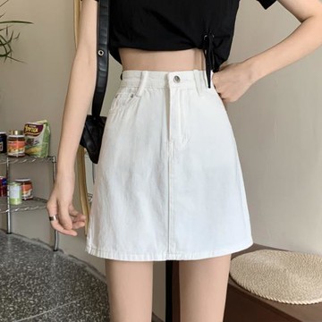 白色裙子女夏薄款2025新款高腰A字牛仔半身裙學生大碼包臀裙短裙
