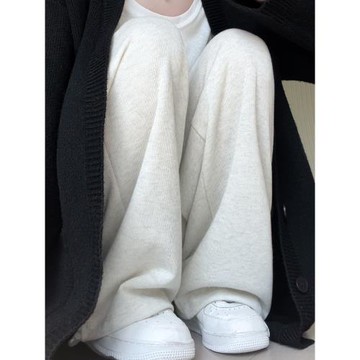 米白色雪尼爾闊腿褲女秋冬新款小個子高腰垂感軟糯燈芯絨拖地長褲