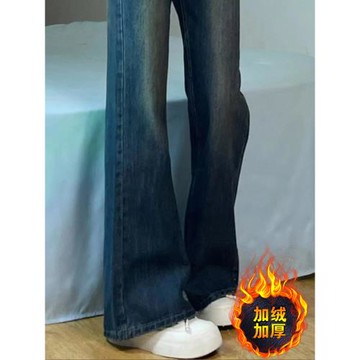 美式復古微喇叭加絨牛仔褲女夏季闊腿褲高腰顯瘦直筒寬松拖地褲子