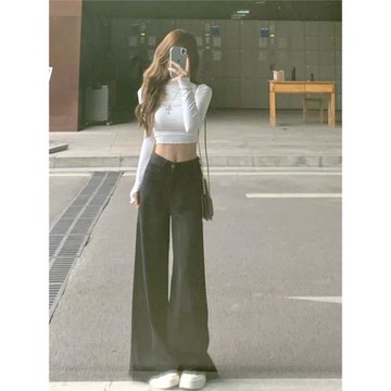 美式復古直筒牛仔褲女秋季2023新款做舊高腰拖地長褲寬松闊腿褲子