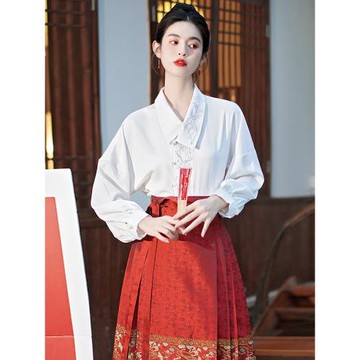 搭配馬面裙的上衣長袖新中式襯衣女秋季明制漢服交領飛機袖襯衫